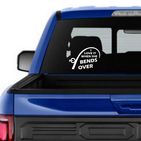Rod n Reel, I love It When She Bends Over Vinyl Decal
