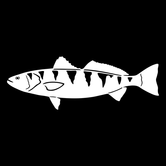 Sea Bass, White Vinyl Decal ~ Saltwater Detailed Silhouette Sticker